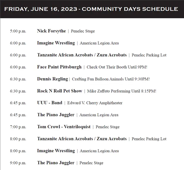 Saturday 12:15 & 1:30 on the Cherry Amphitheater Saturday 12:15 & 1:30 on the Cherry Amphitheater